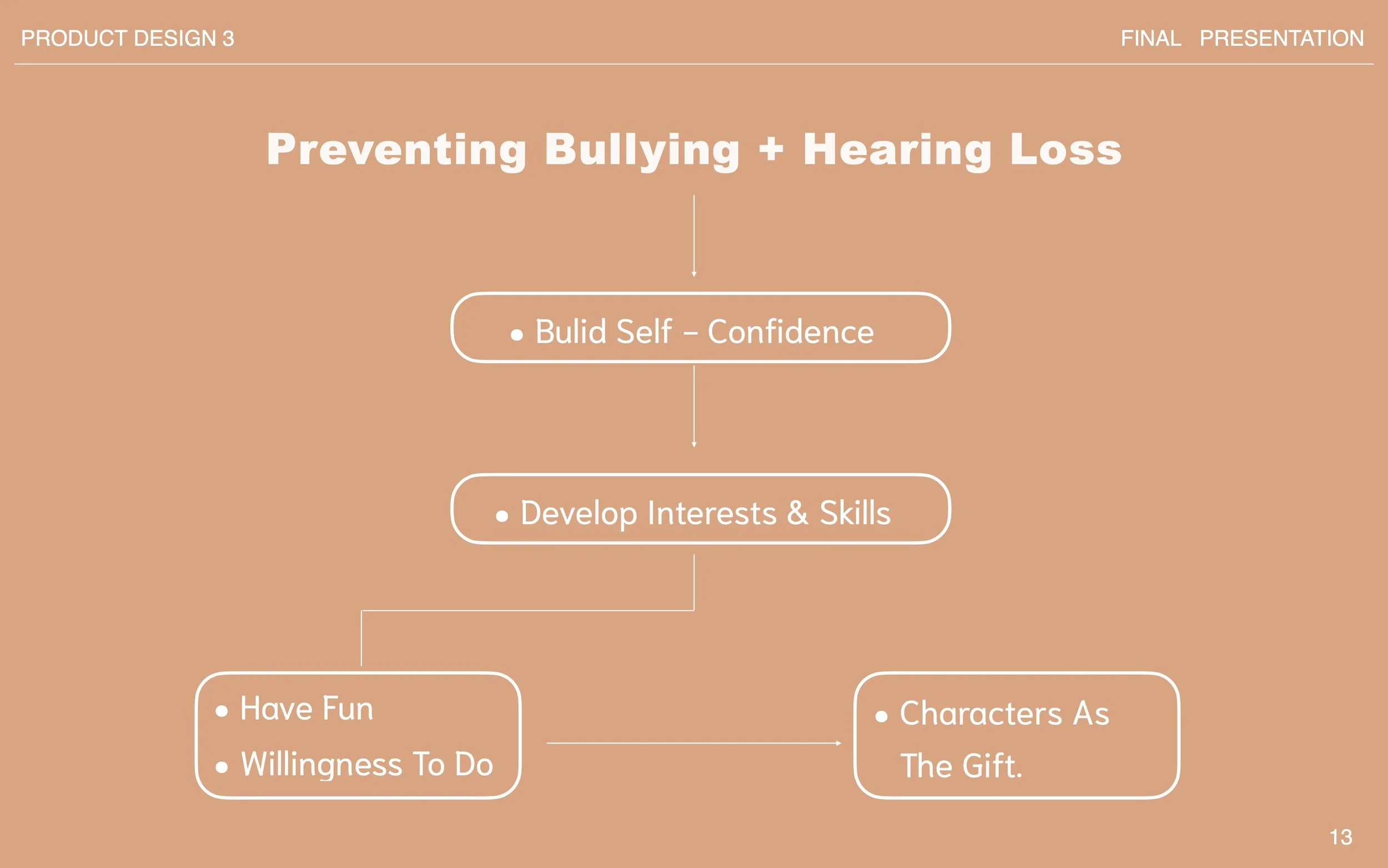 The design concept is to help hearing impaired children prevent bullying in school. As well as building self-confident.