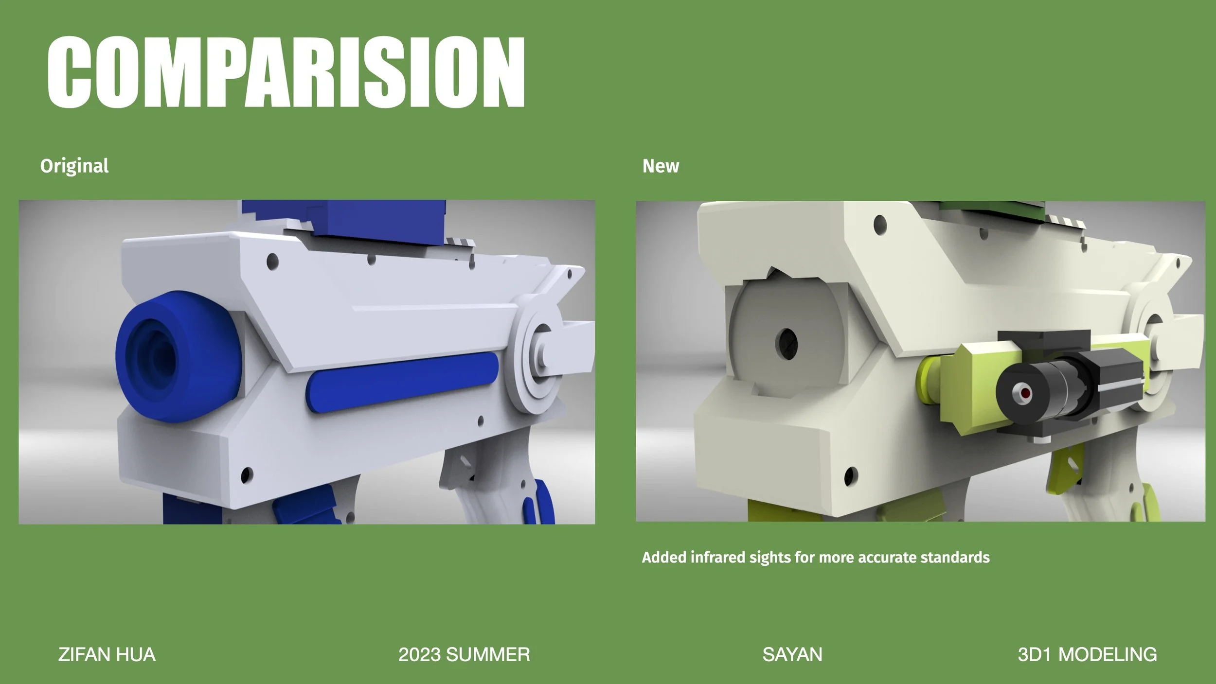 Also inspired by Buzz Lightyear, infrared sights have been added to the original base to water gun fun!